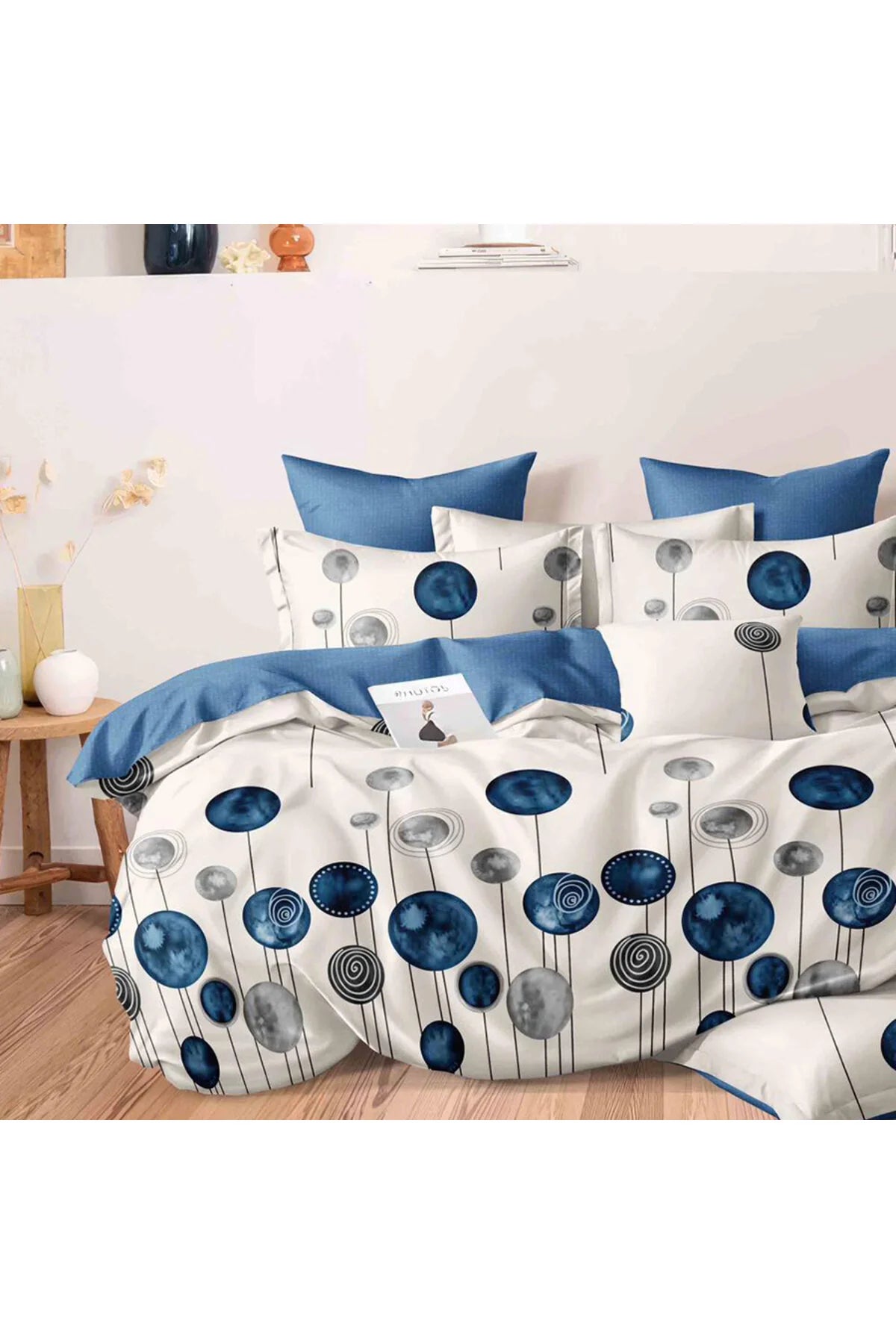 Lenjerie de pat cu elastic pentru pat dublu formata din 6 piese cu model geometric
