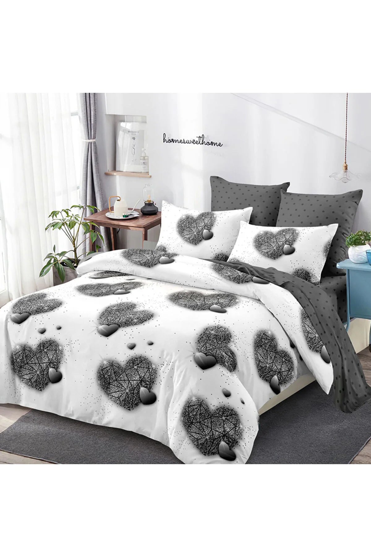 Pucioasa-Set Lenjerie de pat cu elastic formata din 6 piese cu inimioare